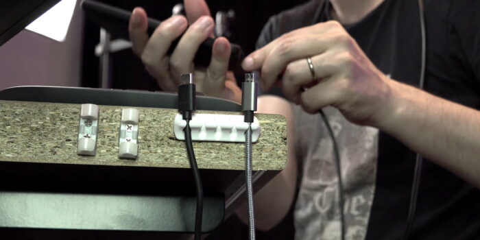 On peut les placer directement sur un bureau, exemple ici avec les câbles de mes deux Stream Decks, ou on peut les placer sur le côté du bureau, ce que je faisais avec un autre système auparavant mais qui est encore plus pratique avec des petits passe-câbles puisque je peut placer mes câbles USB de recharge, pour ma manette, pour mon téléphone, etc. Vraiment je trouve ça très pratique, surtout si on prend en compte le fait qu’il y a 5 tailles différentes. Donc un accessoire pas cher, qui permet d’organiser un peu son bureau, moi ça me plaît.