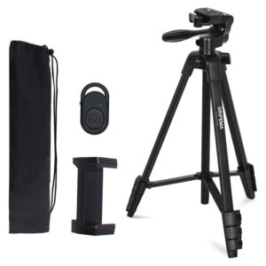 Autre accessoire fourni, c’est un clip pour smartphone, pratique pour ceux qui utilisent leur téléphone en tant que webcam, puisqu’on a déjà vu ensemble que ça pouvait être une solution intéressante pour éviter de devoir acheter une cam. Et là aussi, par rapport à ce qui se fait habituellement à ce tarif, je trouve le système bien pensé, facile d’utilisation, ça s’adapte à quasiment n’importe quel smartphone et on peut ensuite monter le support sur le trépied, impeccable. Notez enfin que le trépied peut aller de 41 cm à 1,40 m, donc vous pouvez le poser sur un bureau ou le positionner par terre, au choix. En tout cas je le répète mais j’ai été très agréablement surpris par la qualité de fabrication de cet accessoire, malgré son prix contenu.