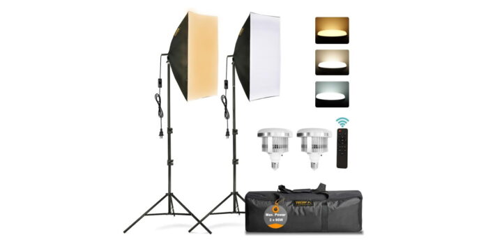 89,99 €71,99 €- Si vous avez un peu plus de place, vous pouvez vous orienter vers une paire de softbox avec un éclairage plus doux qui atténue les ombres. Et là aussi on a un modèle qui peut faire varier la température avec même une télécommande. Attention à ce prix, c’est de l’entrée de gamme et c’est peut-être un peu fragile, donc à manipuler avec soin.