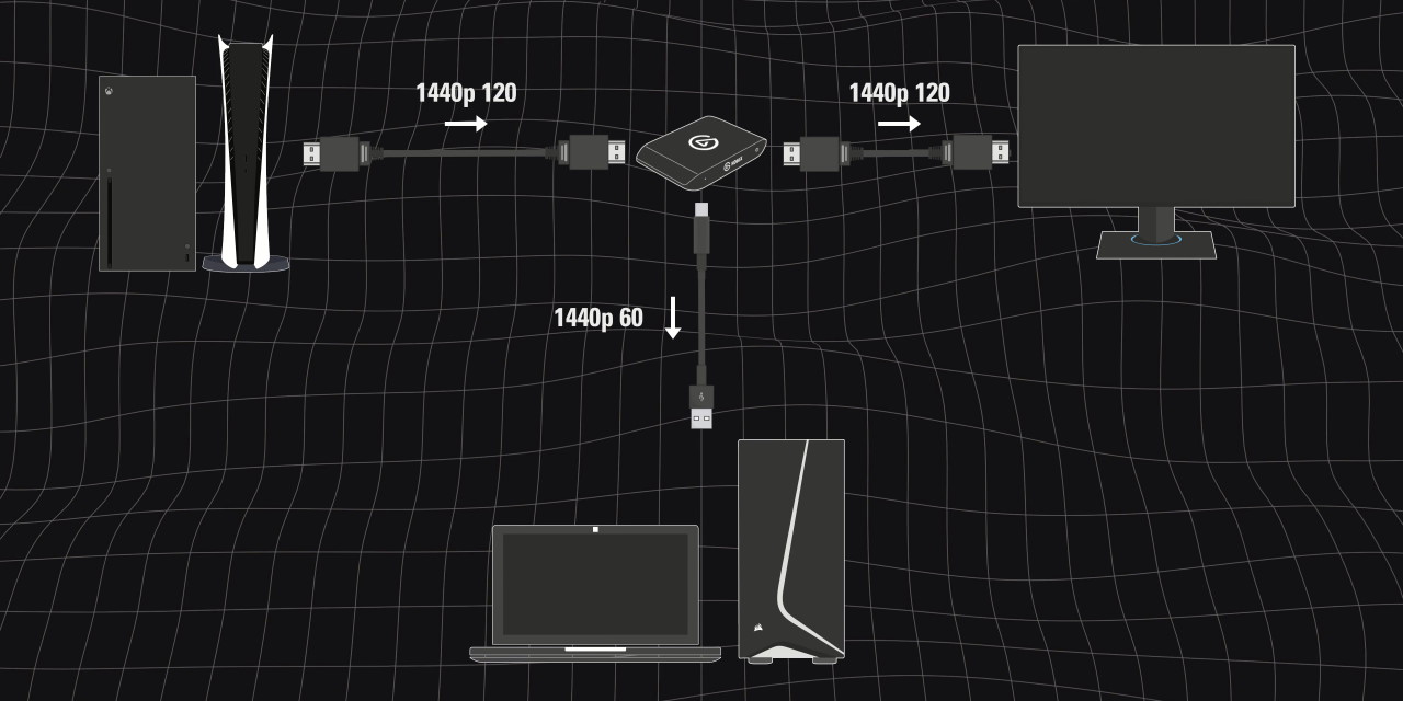 - 1440p120 → passthrough 1440p120 → capture 1440p60
