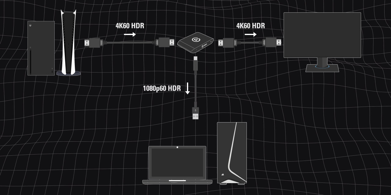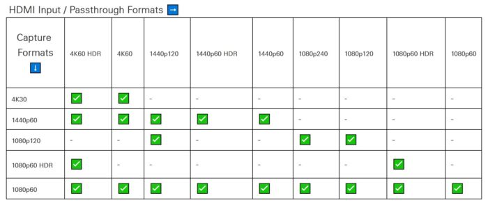 - 4K60 HDR → passthrough 4K60 HDR → capture 1080p60 HDR / 4K30 SDR