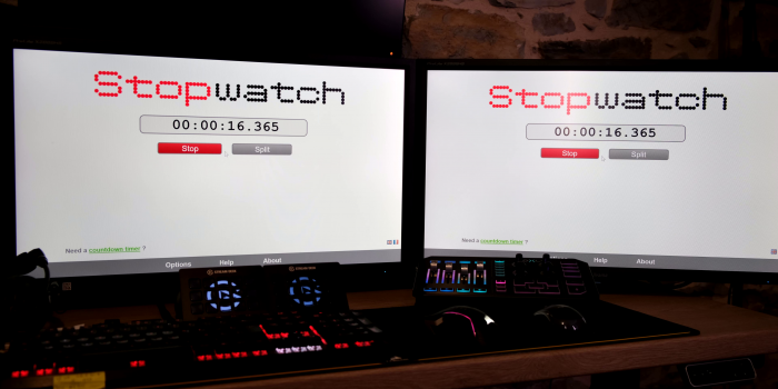 Autre point notable, la HD60X est annoncé sans latence au niveau du passthrough, ce qui est un argument de taille puisque ça permet de jouer sur son écran sans avoir délai entre l’action qu’on fait sur la source, par exemple sur le jeu de lancé sur une console, et l’affichage sur l’écran ou la télé. J’ai donc voulu vérifier si c’était vrai, et pour ça j’ai simplement branché la sortie HDMI de mon PC sur la HD60X, que j’ai alimentée via son cordon USB, et j’ai branché la sortie HDMI de la HD60X sur un autre écran. J’ai dupliqué l’affichage de mon PC afin d’avoir mon Windows, les deux écrans sont d’ailleurs les mêmes modèles de chez Iiyama, et j’ai lancé un chronomètre affichant les millisecondes pour voir s’il y avait un décalage. Résultat : en 1080p60, il n’y a absolument aucun décalage, donc vraiment aucune latence en ce qui concerne le passthrough !