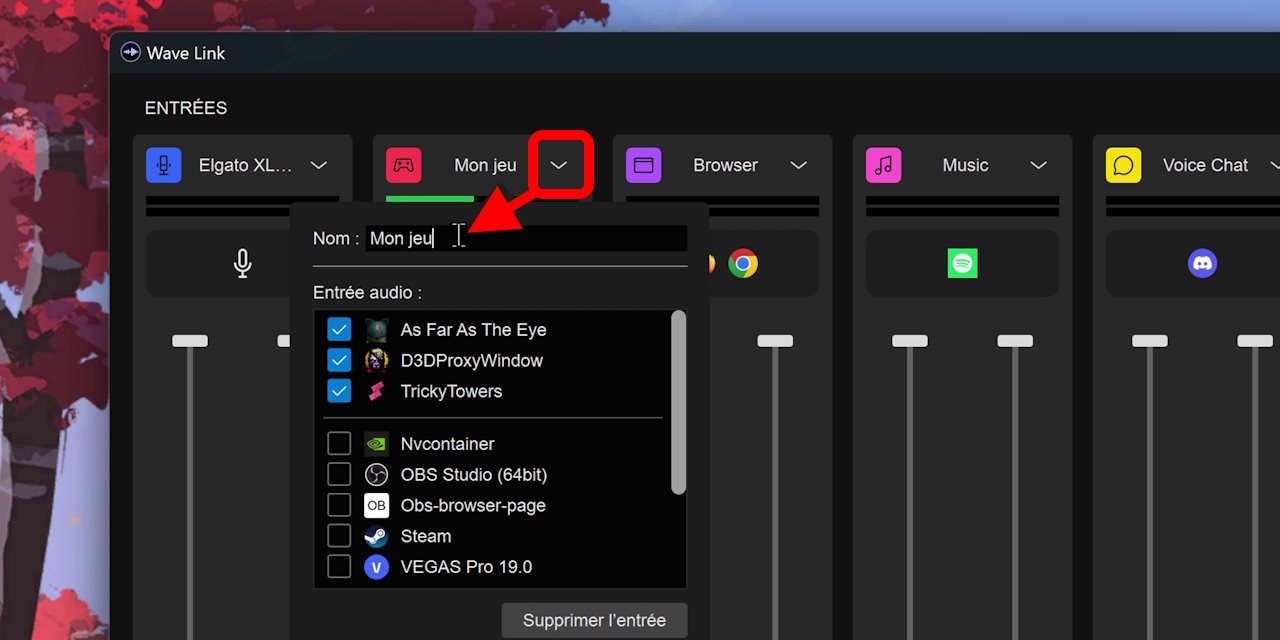 Pour configurer Wave Link, il suffit d’ajouter toutes les pistes audio qu’on veut contrôler, que ce soit un jeu, le navigateur, Discord, Spotify… On a déjà vu comment faire avec le micro et il suffit de répéter l’opération avec les applis dont on veut capturer l’audio.