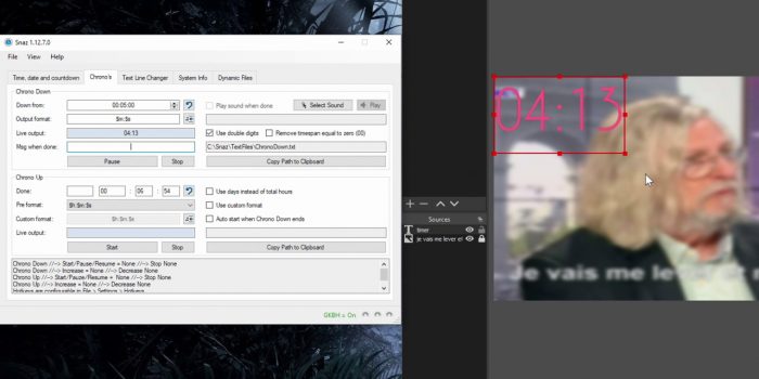 Eh bien je vais vous montrer deux méthodes pour faire ça. La première, la plus courante, c’est en utilisant Snaz, un logiciel à installer sur votre PC. La 2e est moins connue et pourtant intégrée d’office à OBS, qui fait que le compte à rebours se déclenchera automatiquement en changeant de scène.