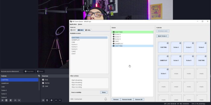Allez on enchaîne avec OBS Scene Queue, un outil incroyable qui permet de programmer l’ordre de passage des scènes. Là encore ça nécessitera websocket, donc OBS uniquement, pas de Streamlabs ni de XSplit. Et évidemment ça ne sera pas utile à tout le monde, si vous avez une scène de début de stream, une scène de discussion et une scène de jeu, aucun intérêt… Mais admettons que vous ayez préparé une émission complète, au pif une émission d’humour diffusée sur Twitch en 2019 et qui s’appellerait Ze Big Show, bref une émission avec beaucoup de scènes différentes et un ordre bien précis à respecter pour ces scènes, alors OBS Scene Queue est fait pour vous !