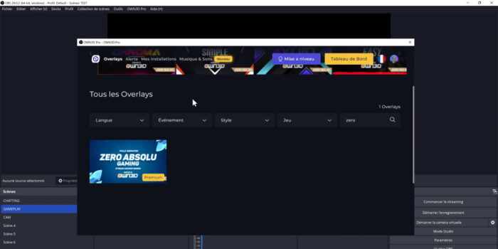 Un autre plugin sympa, il n’est pas nouveau mais il est mis à jour très régulièrement, c’est le plugin Own3d Pro, qui sponsorise cette vidéo ! Ce plugin permet d’installer des overlays et des alertes en trois clics, de base il y a 5 thèmes gratuits, et si vous êtes du genre à vouloir changer d’overlay en fonction de la saison, en fonction du jeu, pour Halloween ou pour Noël, eh bien avec un abonnement Premium, vous avez accès à plus de 1000 overlays et alertes, et vous pouvez absolument tout tester tant que votre abonnement est actif.