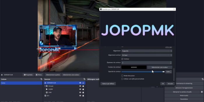 Si vous cherchez un overlay ou un cadre de ce type, vous trouverez forcément votre bonheur sur la boutique Own3d (55 % de réduction avec le code TOMTOM). Et maintenant, on va personnaliser un peu le texte qu’on vient d’ajouter.