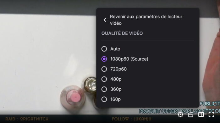 Autre point, si vous n’êtes pas partenaire Twitch, c’est possible que vous n’ayez pas toujours le transcodage, ça veut dire que vos viewers n’auront pas systématiquement le choix de qualité sur votre stream.