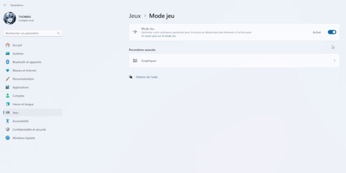 On peut aussi simplement taper « mode jeu » dans la barre de recherche de Windows, ça revient exactement au même. Et l’effet est immédiat, pas besoin de redémarrer l’ordi.