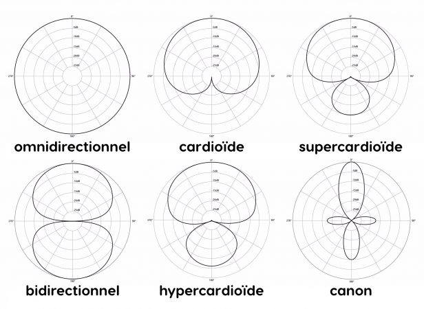 Ces micros sont quasiment tous à directivité cardioïde, ça signifie en gros qu’ils vont capter les sont plutôt en face du micro et réduire ceux qui sont sur les côtés et surtout derrière, et là on en revient au sens des micros.