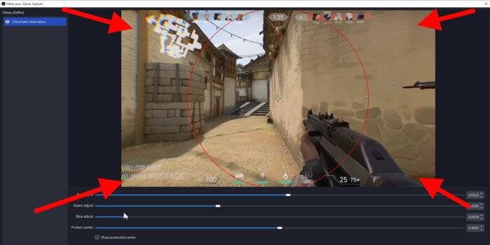 On peut activer la visualisation du cercle protégé par l’effet et modifier les valeurs de couleurs pour le rouge, le vert et le bleu afin d’obtenir l’effet souhaité. C’est généralement un effet qu’on cherche à supprimer dans les jeux vidéo car il dégrade un peu la qualité visuelle, mais dans certains cas de figure, ça peut avoir son intérêt, je pense notamment à quand on prend des dommages dans un FPS, ça peut ajouter une sensation intéressante pour l’immersion. En tout cas, le script a le mérite d’exister si vous cherchez à reproduire ce type d’effet.