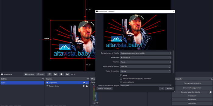 Notez que si vous utilisiez déjà des sources diaporama, elles fonctionneront toujours mais il faudra les recréer si vous migrez sur la nouvelle version d’OBS pour que les changements soient pris en compte.