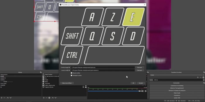 On passe au suivant : Input Overlay. Ce plugin va vous permettre d’afficher une représentation de votre clavier, de votre souris ou de votre manette afin de montrer à vos viewers sur quelles touches vous appuyez quand vous faites un Top 1 sur Warzone. C’est un plugin assez simple à mettre en place, vous avez des overlays de base que vous pouvez utiliser directement en ajoutant un fichier image et un fichier .ini dans les réglages du plugin sur OBS, et si vous voulez en créer d’autres, vous pouvez aussi le faire, ça devient un peu plus technique mais ce n’est pas très compliqué non plus.
