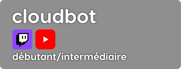 Cloudbot est le bot de chez Streamlabs. Il est très populaire pour une raison simple, c’est que bien souvent, quand on veut faire nos alertes de stream, on utilise Streamlabs. Moi-même j’ai fait des tutos à ce sujet, et ce service d’alertes est utilisé par une très grande majorité des streamers.