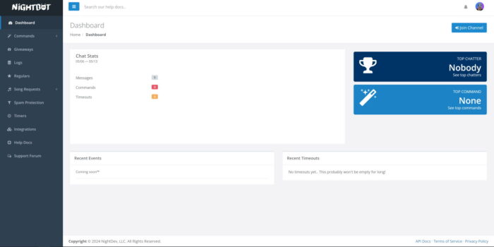 Nightbot est également un chatbot apprécié pour sa simplicité d’utilisation, au même titre que Moobot mais encore un cran au-dessus je trouve. S’il était traduit en français ça serait sûrement l’un des meilleurs chatbots basiques.