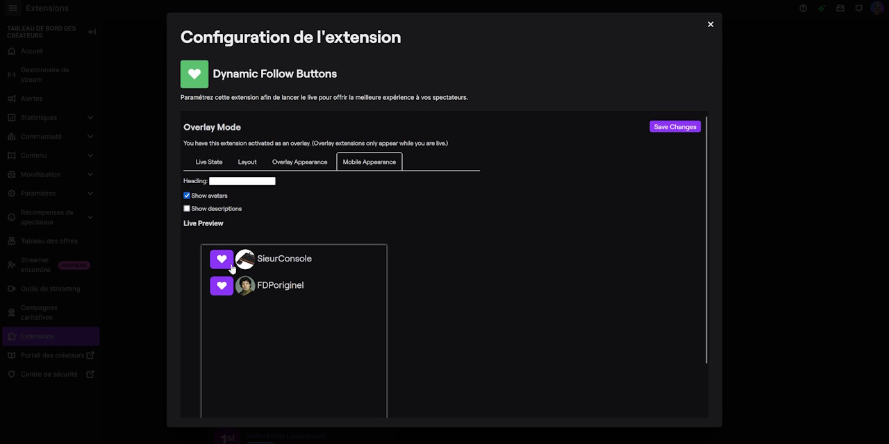 On démarre avec Dynamic Follow Buttons, qui existe en deux versions. Ce sont des extensions très simples qui permettent d’ajouter un bouton de follow interactif sur votre stream.