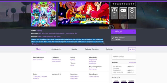 Pour celles et ceux qui ne connaissent pas, IGDB ou « Internet Game Database » est l’une des plus grosses bases de données concernant les jeux vidéo sur internet. On y trouve des informations sur les jeux avec notamment l’éditeur, le développeur, le genre, la date de sortie, des screenshots, les plateformes sur lesquelles est sorti le jeu, et avec bien sûr un petit résumé la plupart du temps.