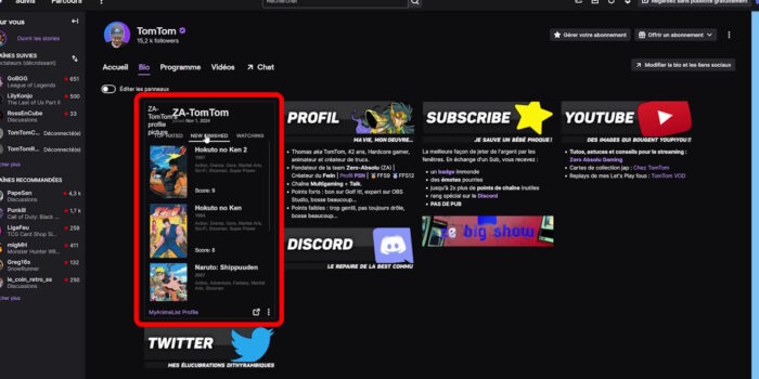 En activant l’extension sur Twitch, ce qui se fait de façon très simple puisqu’il suffit d’entrer votre pseudo sur MyAnimeList, vous aurez droit à un panneau récap de votre profil, avec vos animes et mangas les mieux notés, ceux que vous avez terminés récemment et ceux que vous êtes en train de regarder. Une façon simple et efficace de partager votre passion pour les animes et les mangas avec votre communauté.