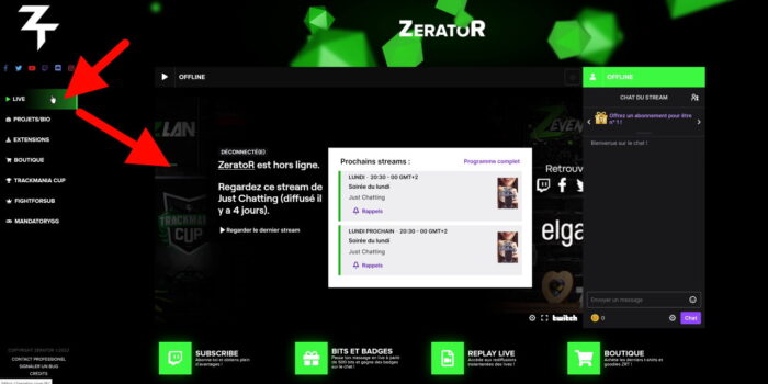 Enfin, dernier cas de figure, c’est ce que je considère comme l’intégration propre. L’exemple classique, c’est le streamer qui a son propre site internet et qui intègre sa chaîne sur son site, sur une page dédiée.