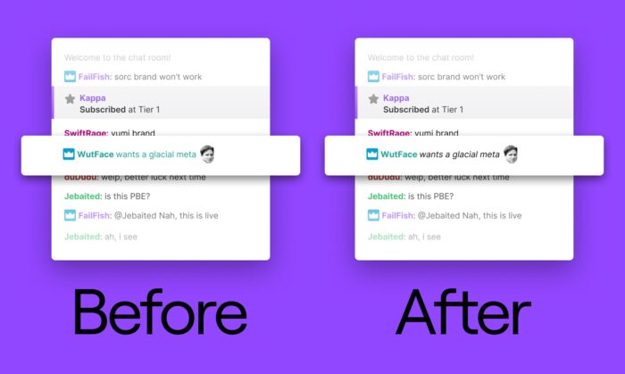 Les Rituels, du moins c’est comme ça que c’était nommé en anglais, c’était plutôt sympa. Quand un nouveau viewer arrivait sur une chaîne, il lui était proposé d’envoyer une émote pour signaler son arrivée ou pour réagir rapidement à un événement en stream. Une fonctionnalité simple qui augmentait un peu le taux d’engagement dans le chat, et les streamers savent bien à quel point ça fait du bien de voir un chat actif.