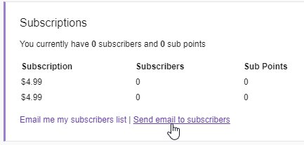 À un moment, les affiliés et les partenaires Twitch avaient la possibilité d’envoyer un e-mail groupé à leurs abonnés. C’était pratique pour prévenir les fidèles d’un événement spécial une fois de temps en temps.