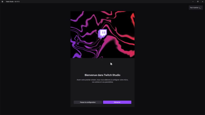 Après avoir téléchargé et installé Twitch Studio, la première fois que vous lancerez l’appli vous devrez vous identifier avec votre compte Twitch, donc faites-le, ensuite vous serez guidés pour la configurer simplement, ce qu’on va voir ensemble.