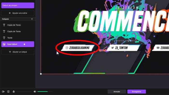 Dernier point, les alertes de stream. En supposant que vous les ayez déjà configurées, vous pouvez simplement placer le calque où vous voulez sur l’overlay, en envoyant un test au besoin.